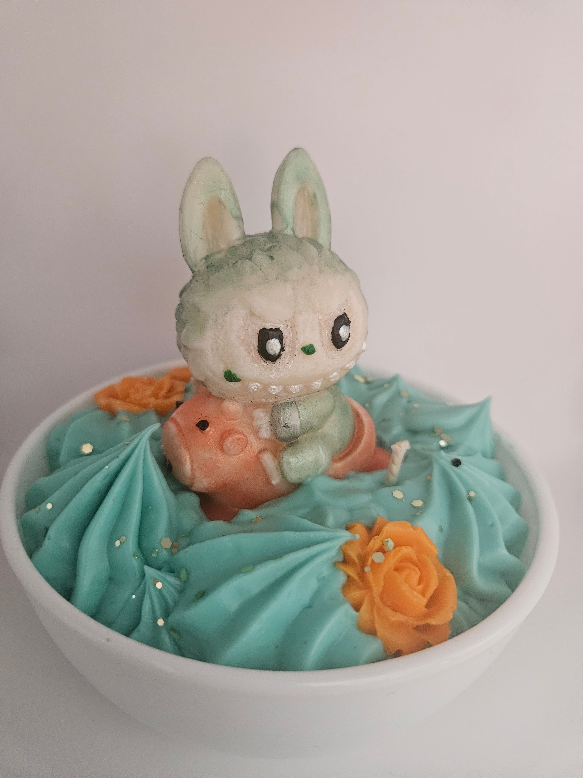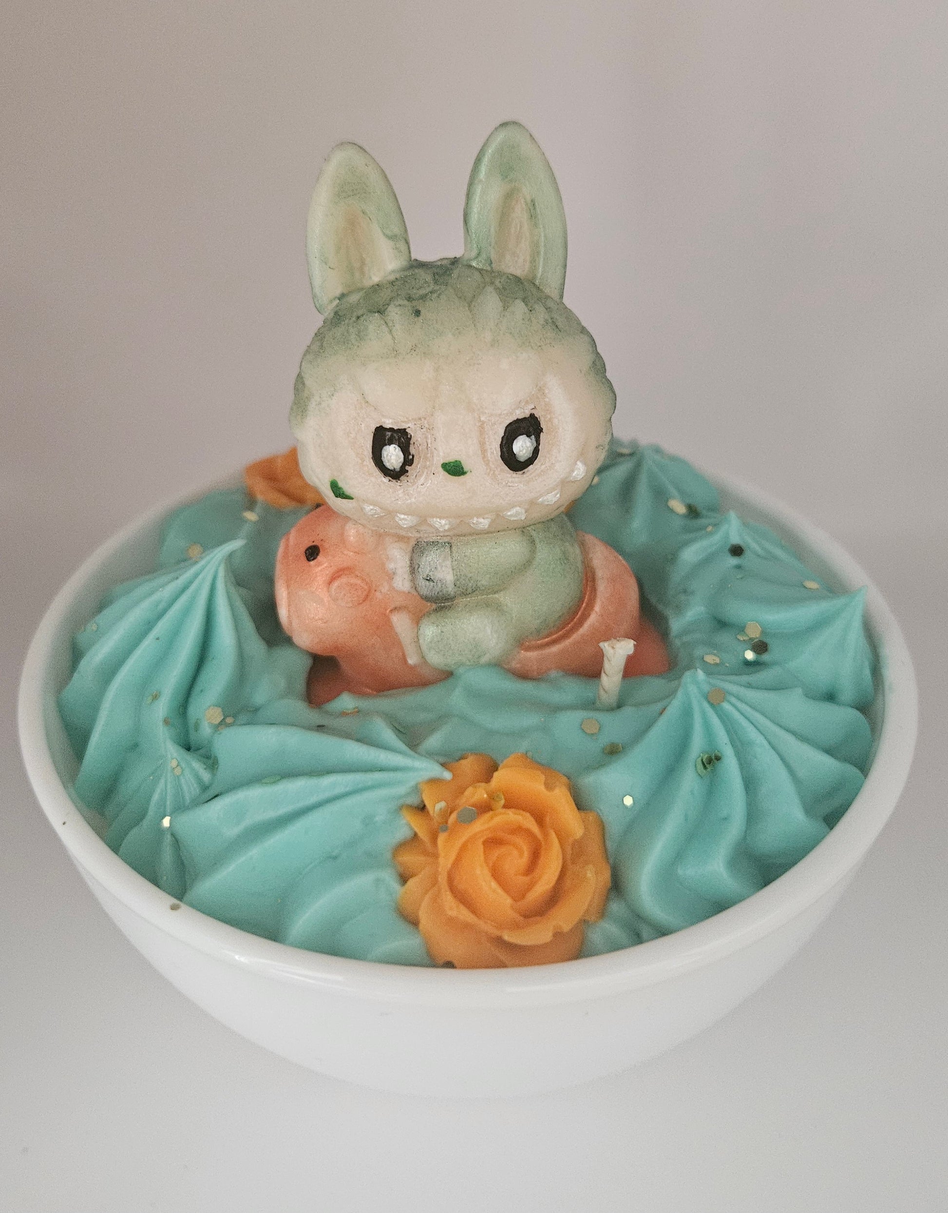 Quand Labubu ramène les tropiques chez toi ...Une bougie mangue-papaye qui sent les vacances 🌴