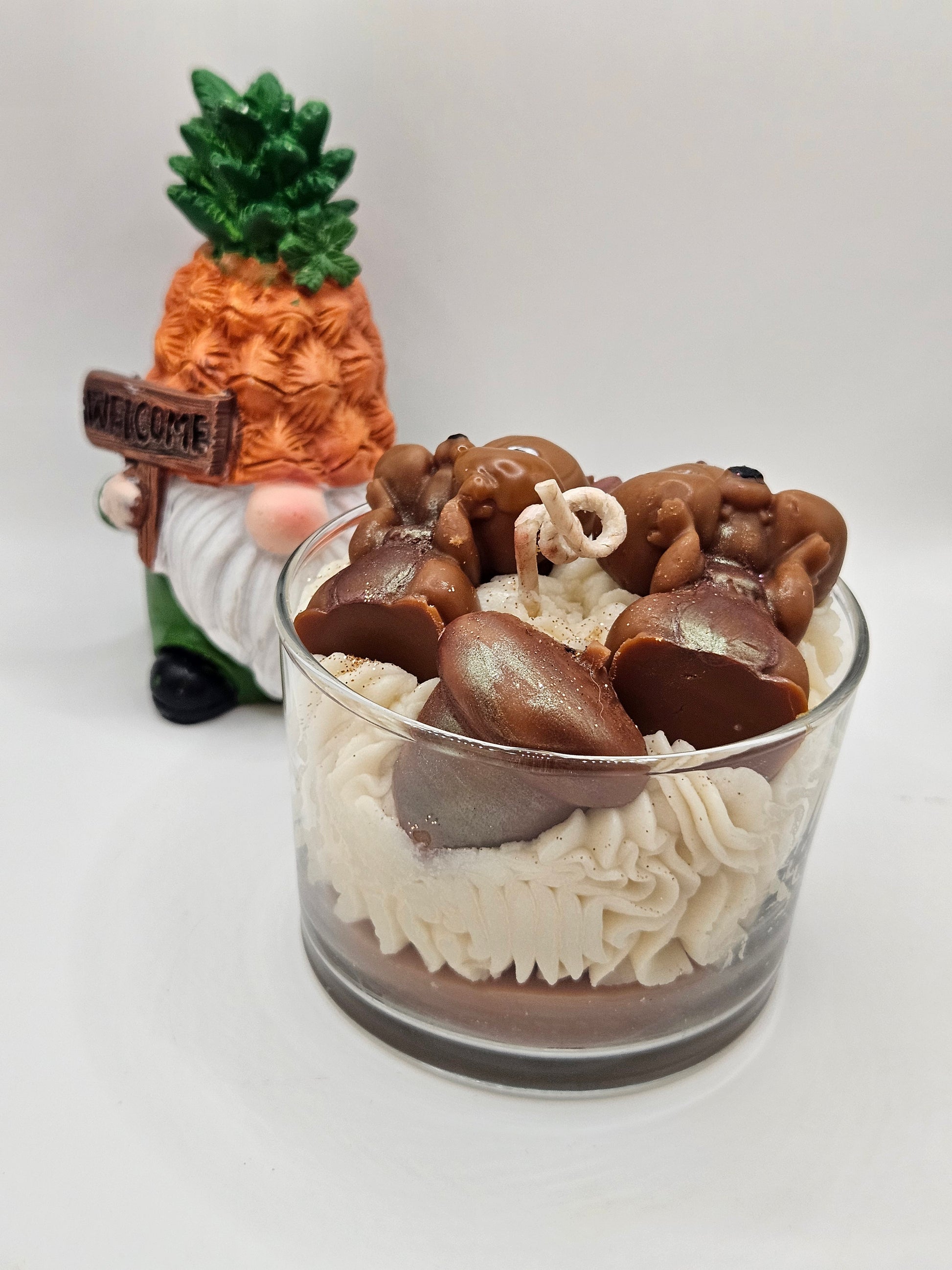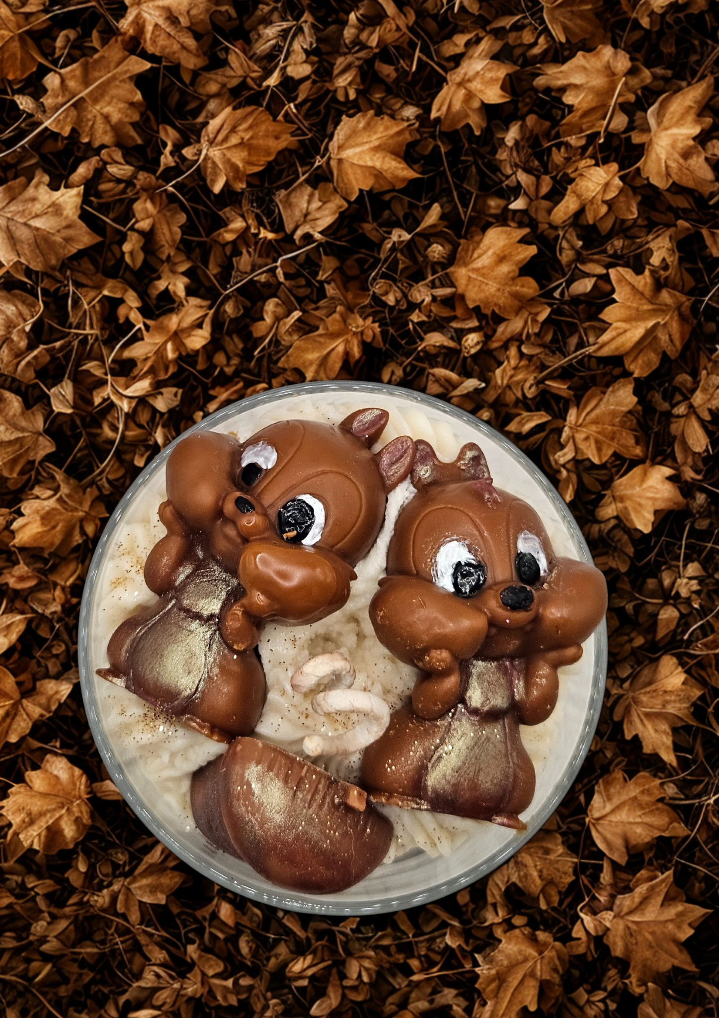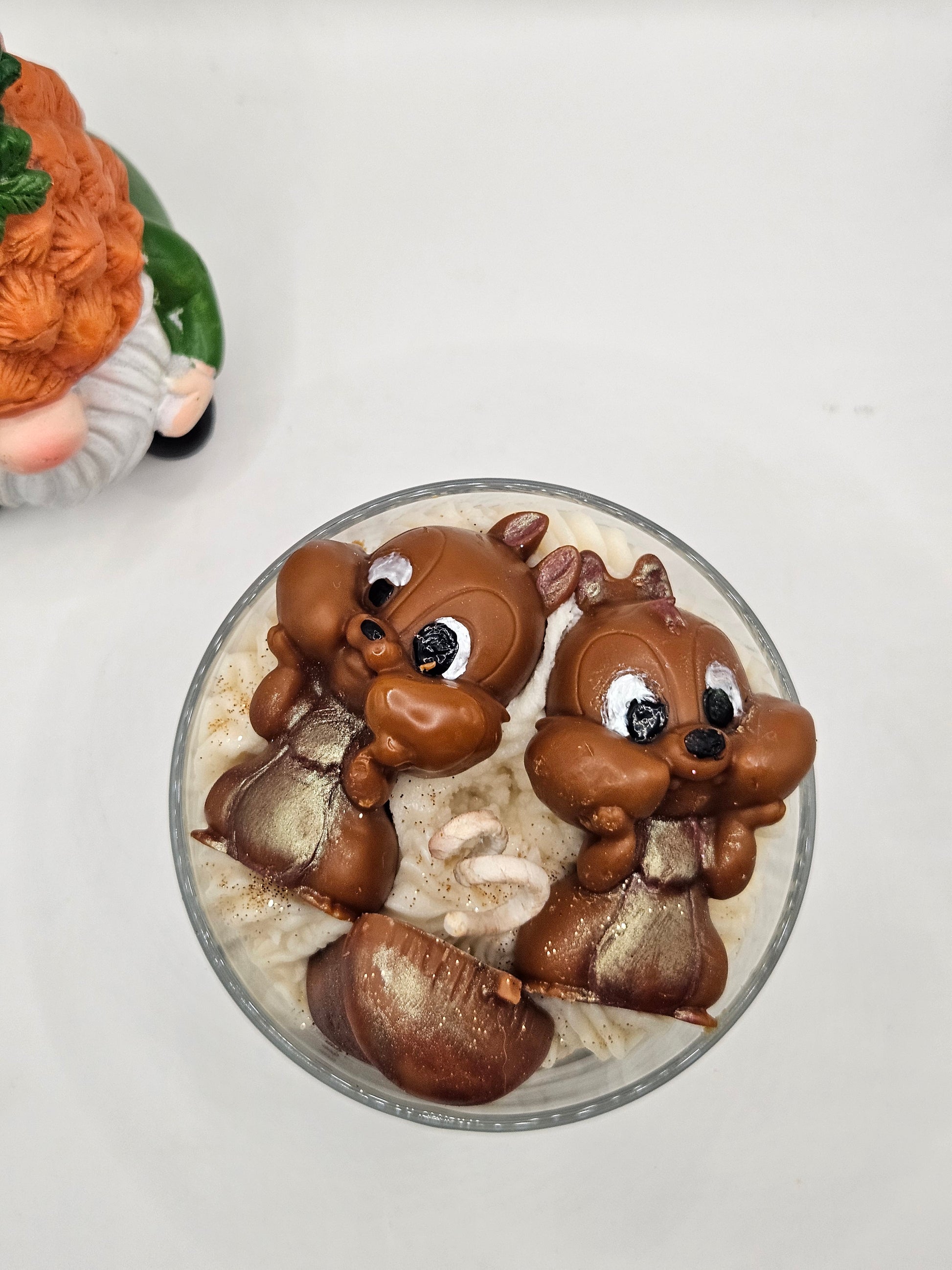 Plongez dans un univers de douceur et de nostalgie avec notre bougie artisanale inspirée de Tic et Tac, les célèbres petits écureuils espiègles.