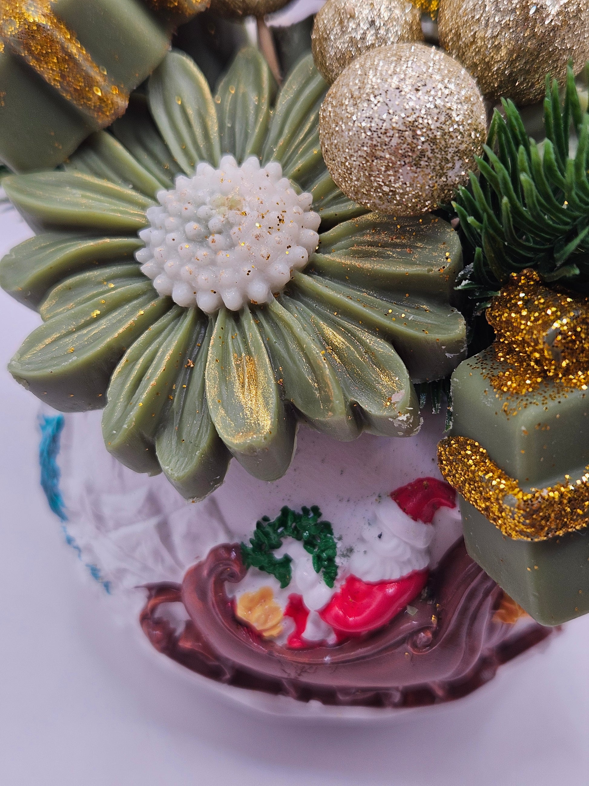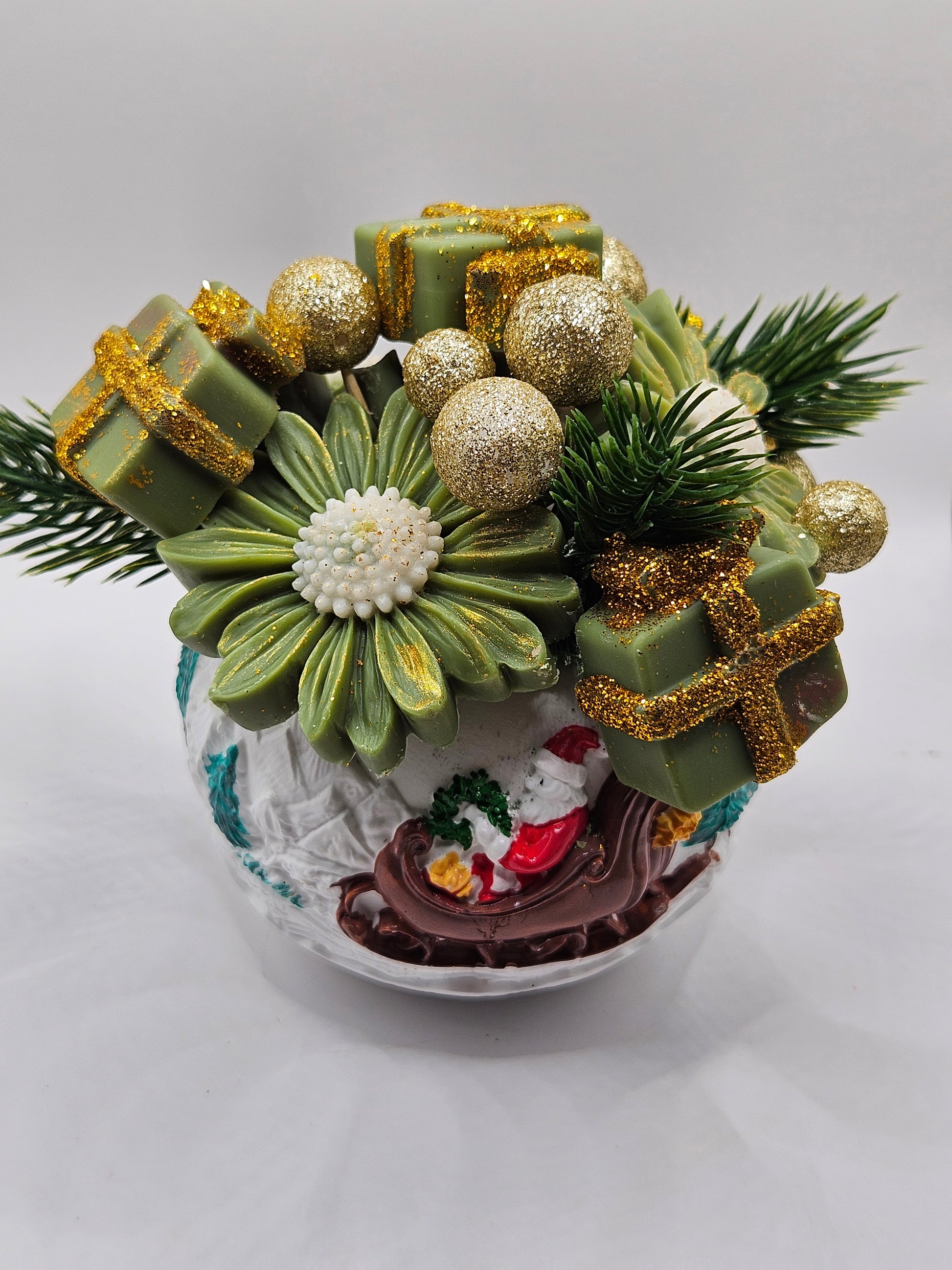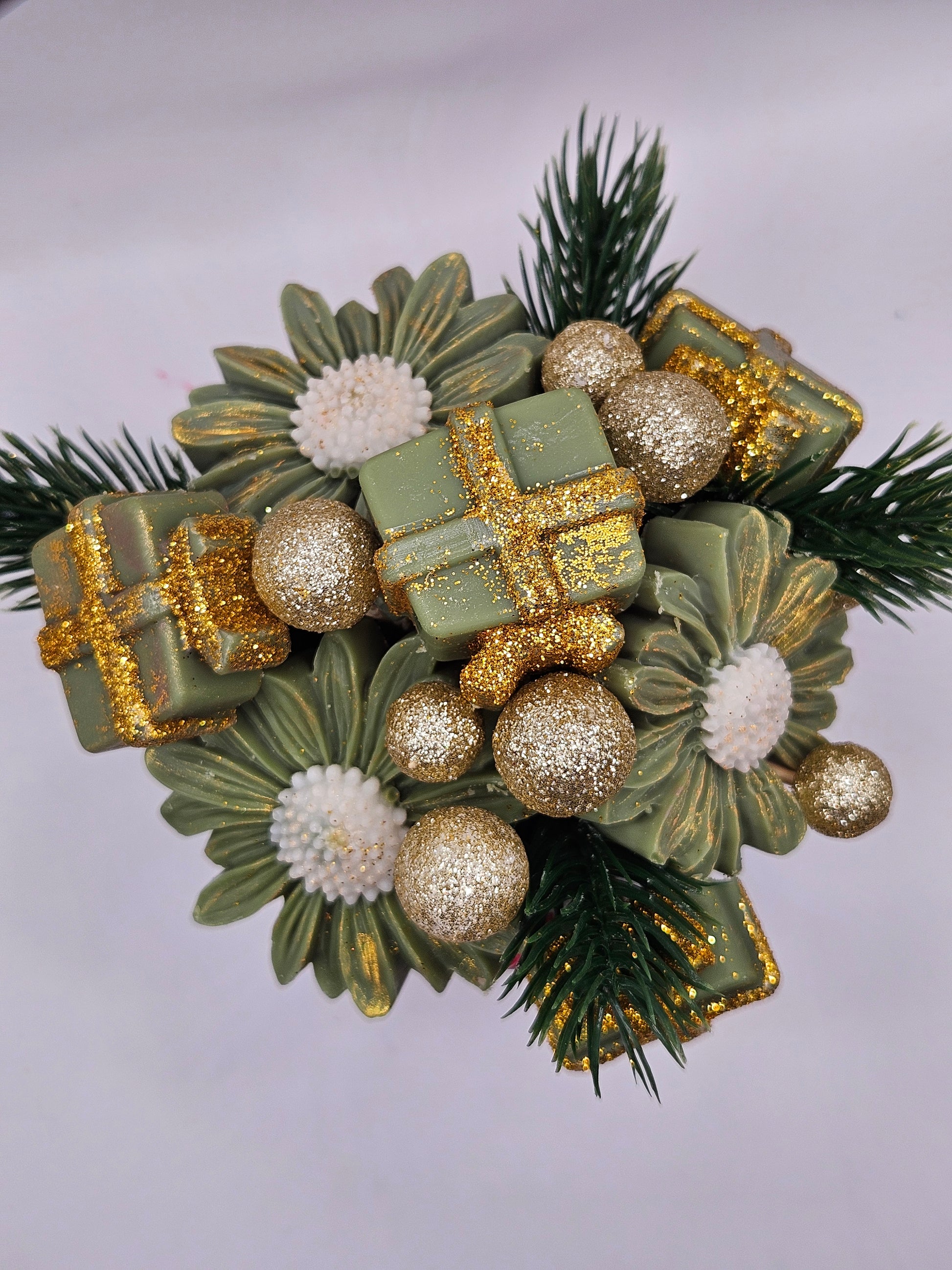 Plongez dans la magie de Noël avec ce bouquet de fondants parfumés à la senteur Couronne de gui, un mélange raffiné et apaisant de verdure hivernale et de notes boisées douces.
