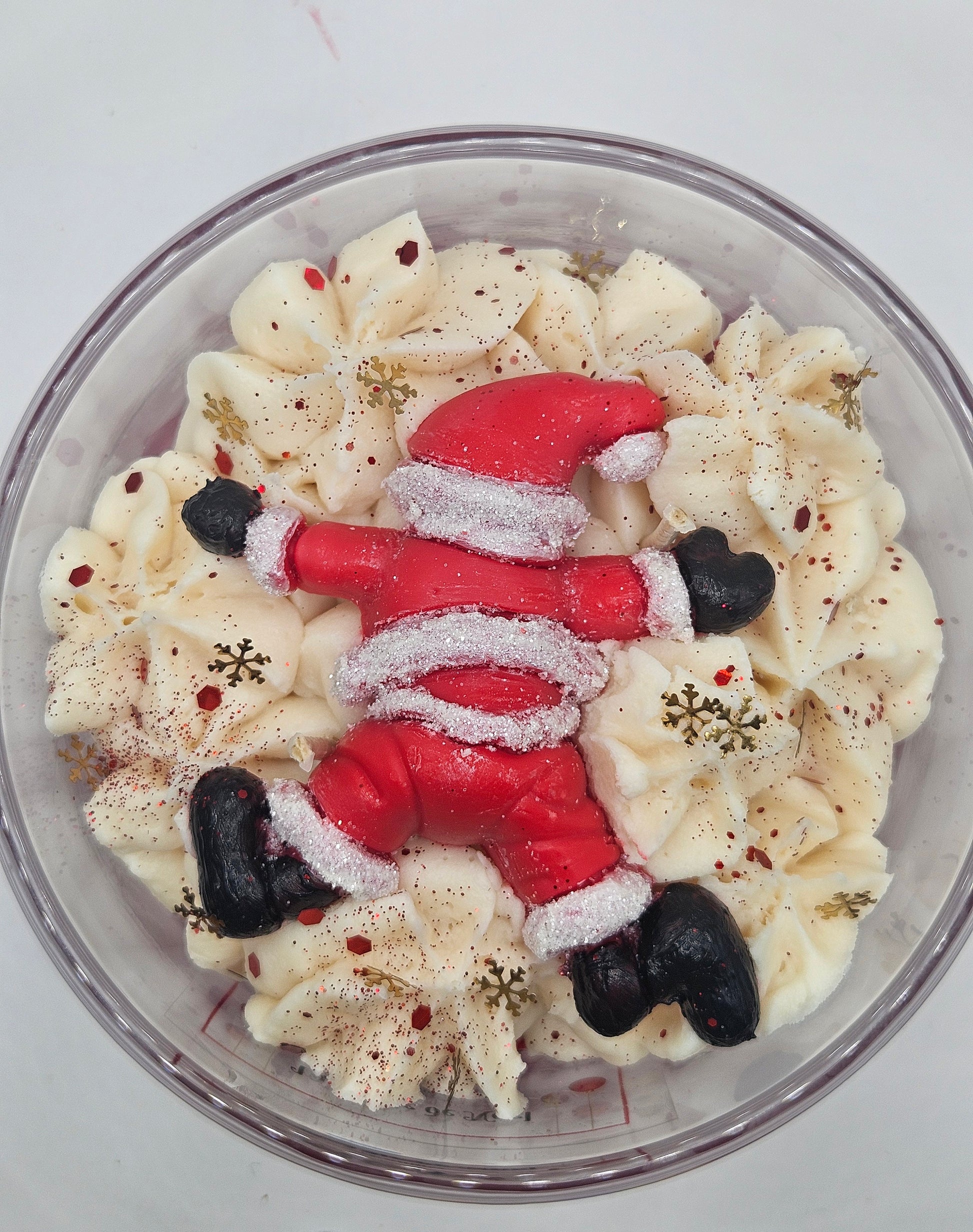 Pour prolonger la durée de vie et la diffusion optimale de votre bougie, laissez la cire fondre uniformément et profitez de la magie… même si le Père Noël fait un petit plongeon dans la neige ! ❄️🕯️