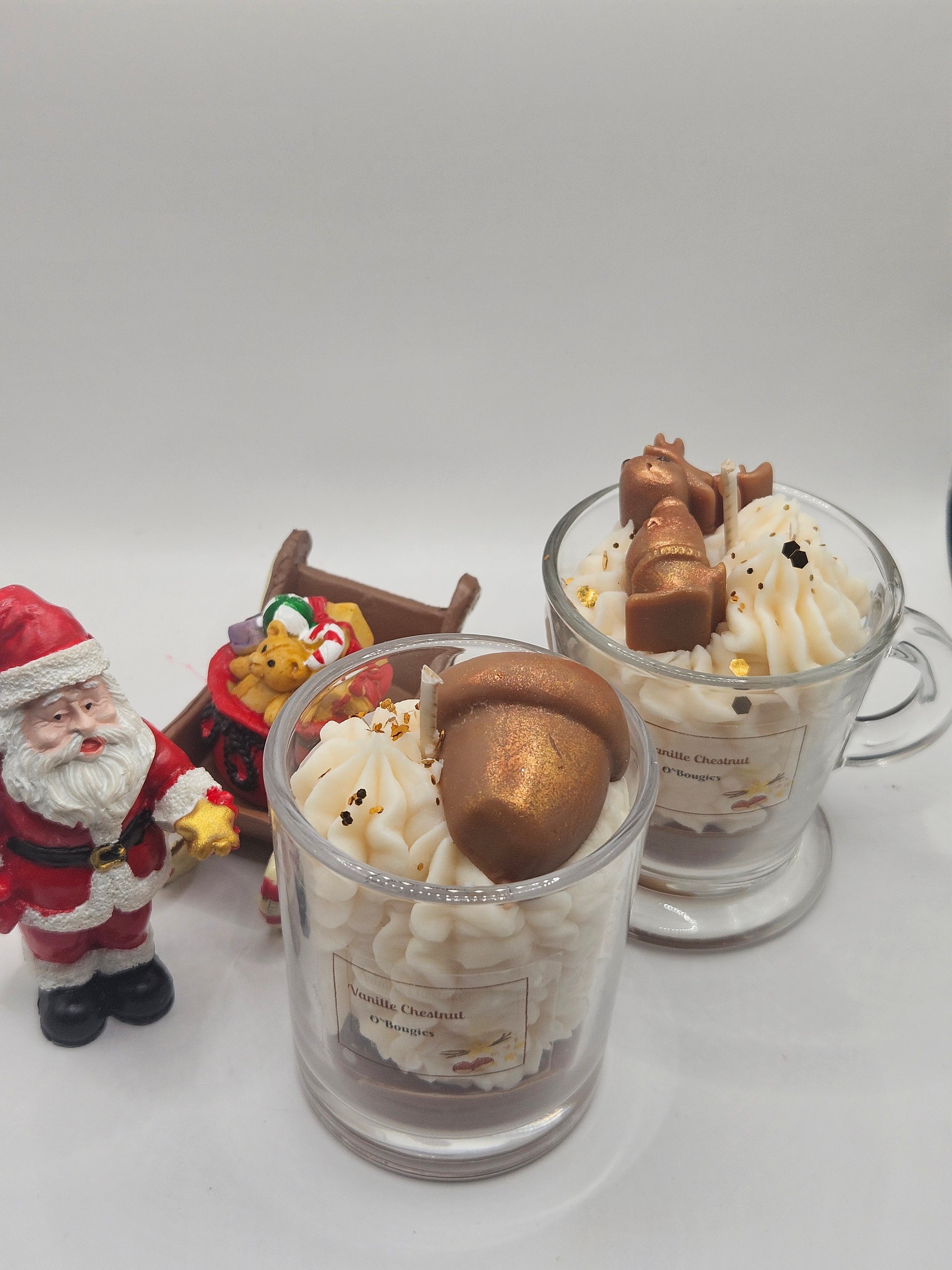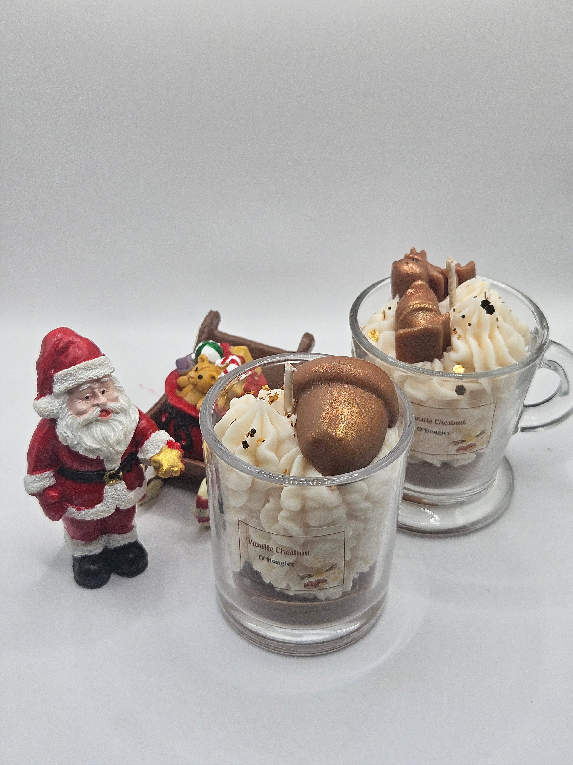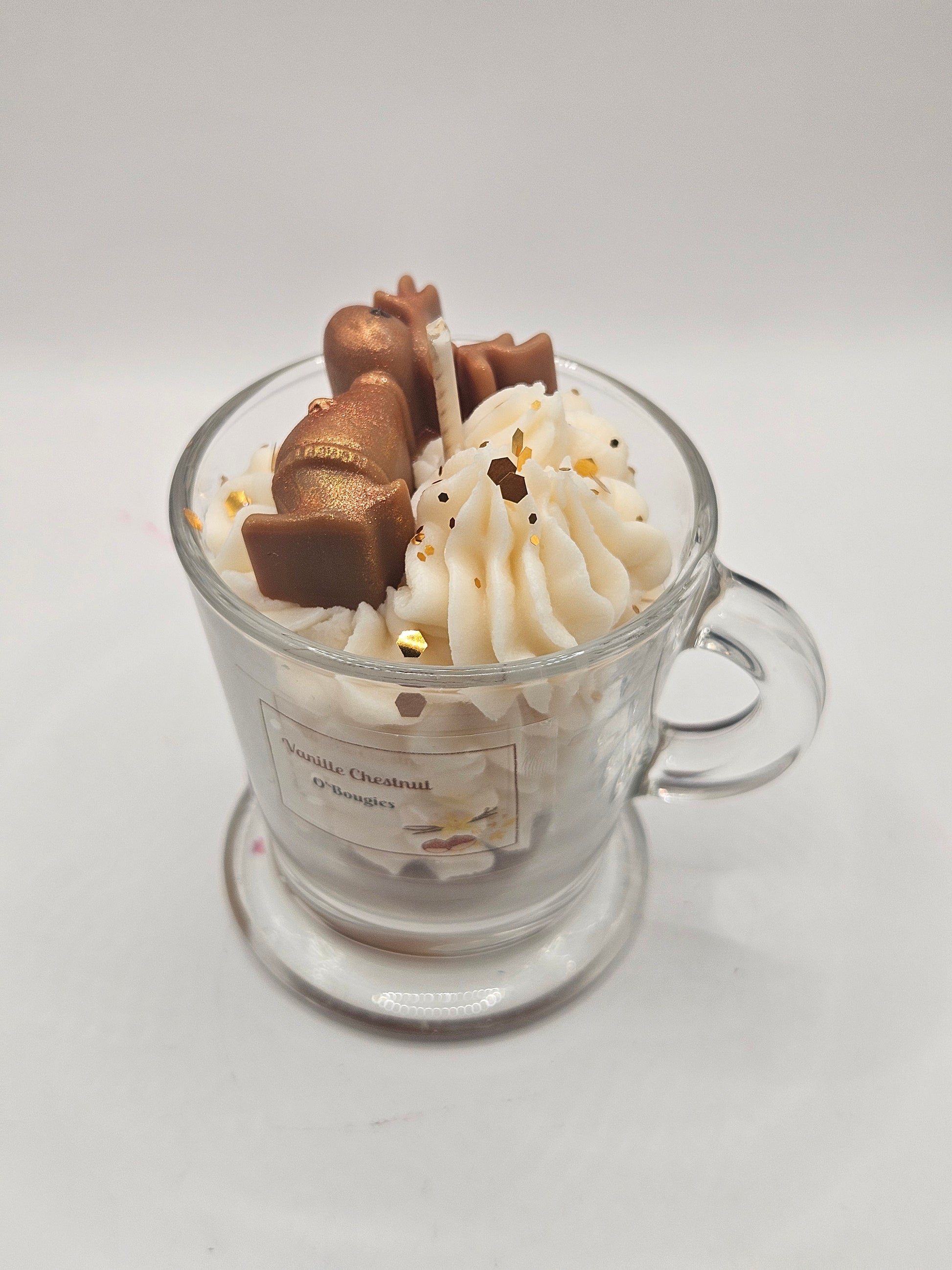 Fabriquée à la main avec soin, cette bougie est coulée dans une élégante tasse en verre réutilisable et décorée d’un effet crème fouettée et d’éléments scintillants pour un rendu unique et raffiné.