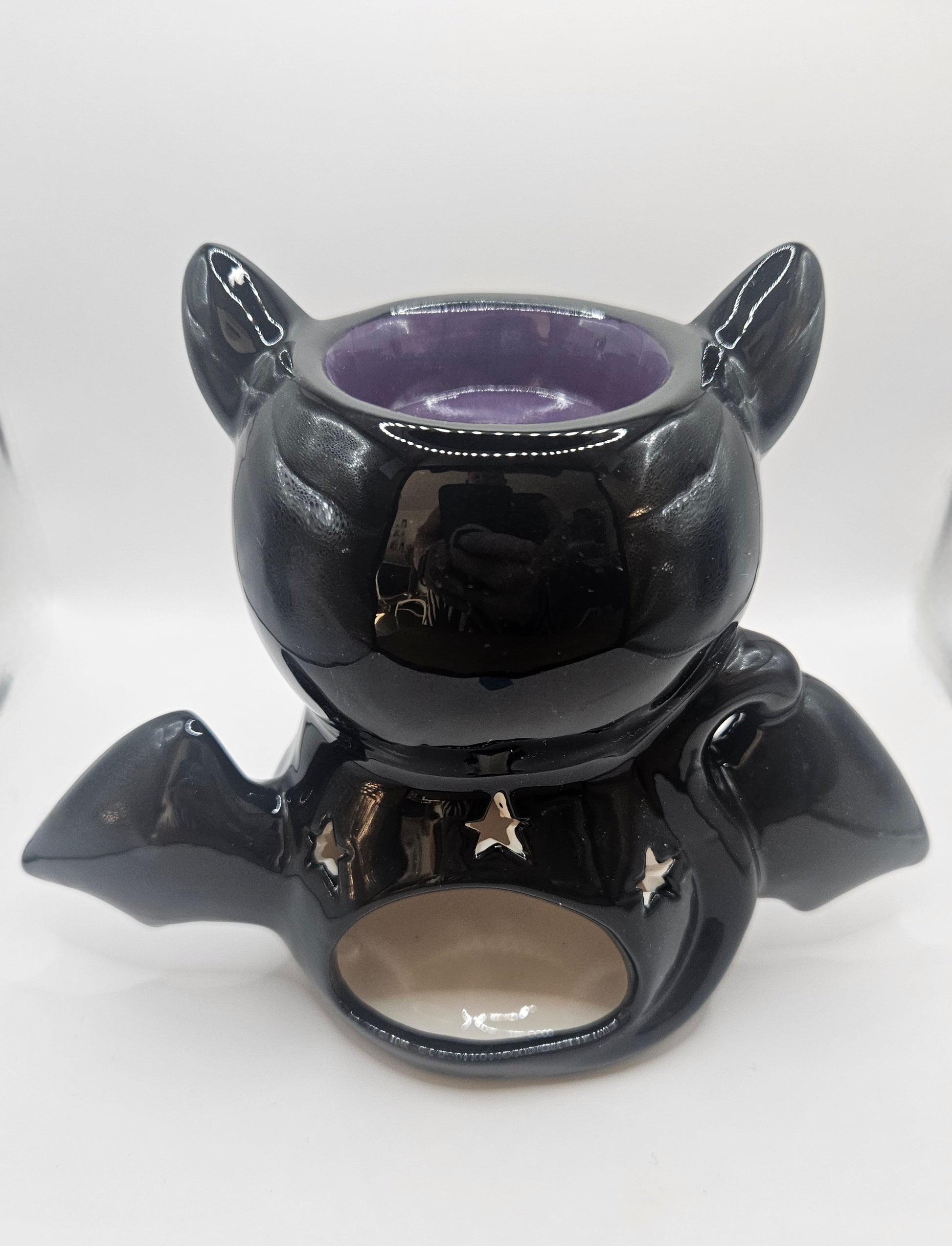 Ce brûleur en forme de chat noir aux ailes de chauve-souris est idéal pour embaumer votre intérieur de senteurs envoûtantes. Placez simplement une bougie chauffe-plat à l'arrière et ajoutez un fondant de cire dans le bol supérieur. Idéal pour une décoration gothique et une détente mystique.